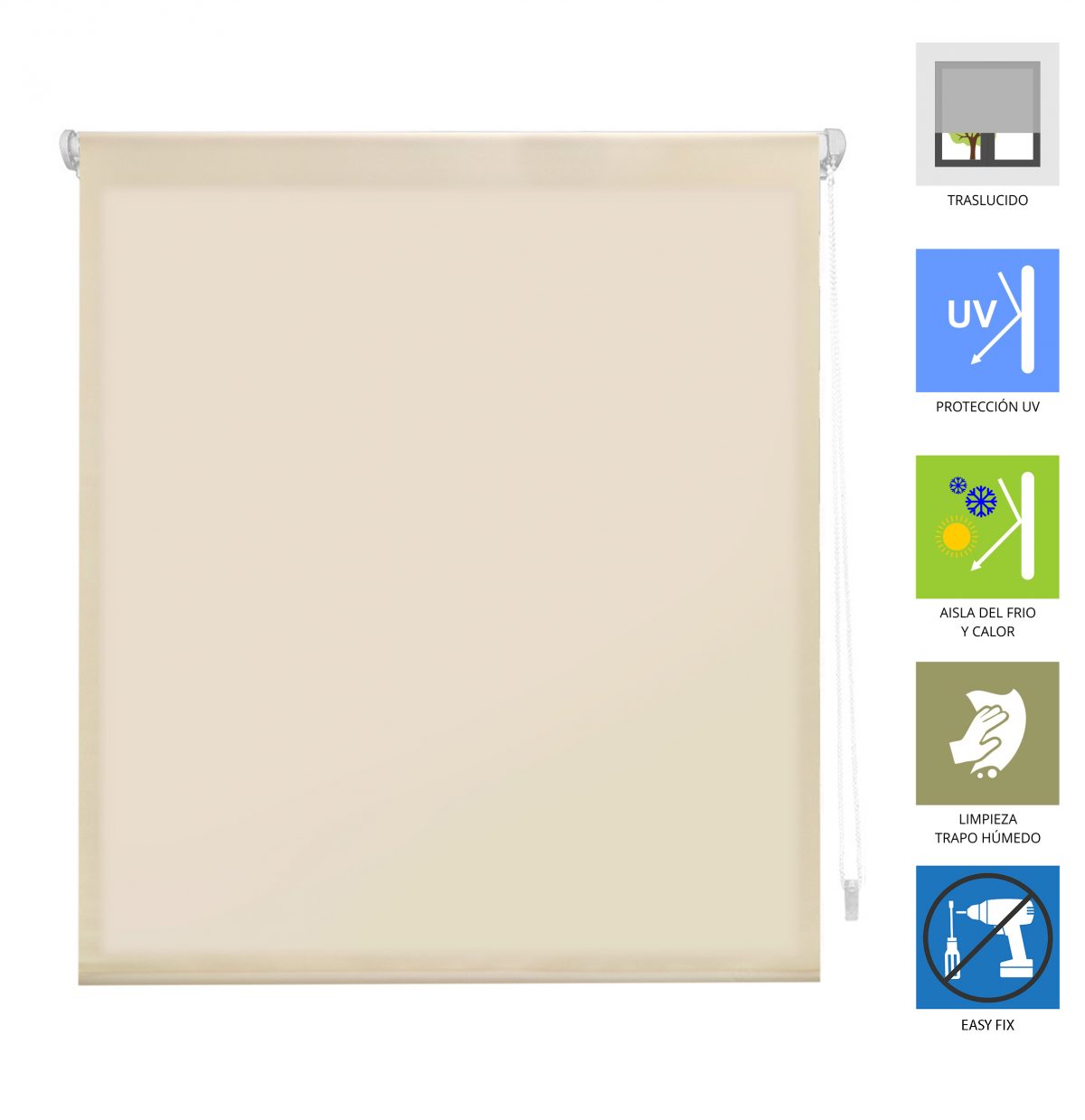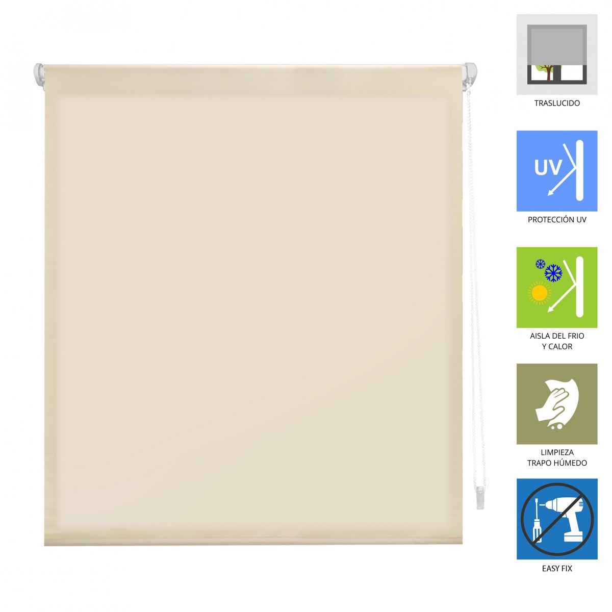 Estor Aure Translúcido de color liso con un tono ideal para combinar con cualquier mueble o parte de la casa. Su fácil colocación permite vestir tu hogar de manera alegre y sencilla en tan solo unos minutos mediante adhesivos o pinzas en el marco de la ventana. De fácil lavado con un simple trapo húmedo.