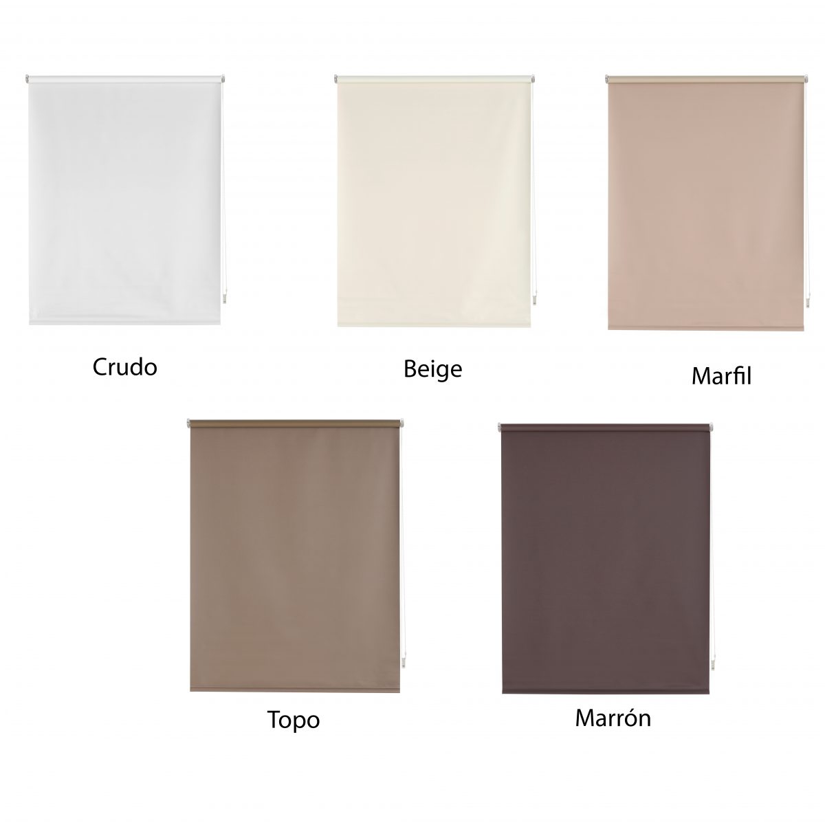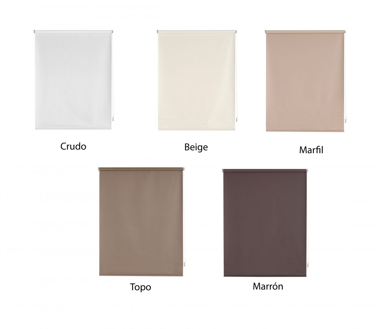 Los estores enrollables opacos se componen con un tejido velado, que impide el paso de la luz a través de él. Perfecto para una habitación donde se quiera generar oscuridad. La composición de este tejido es de fibra de vidrio recubierta de PVC, que es un material ignífugo.