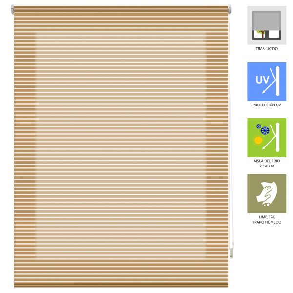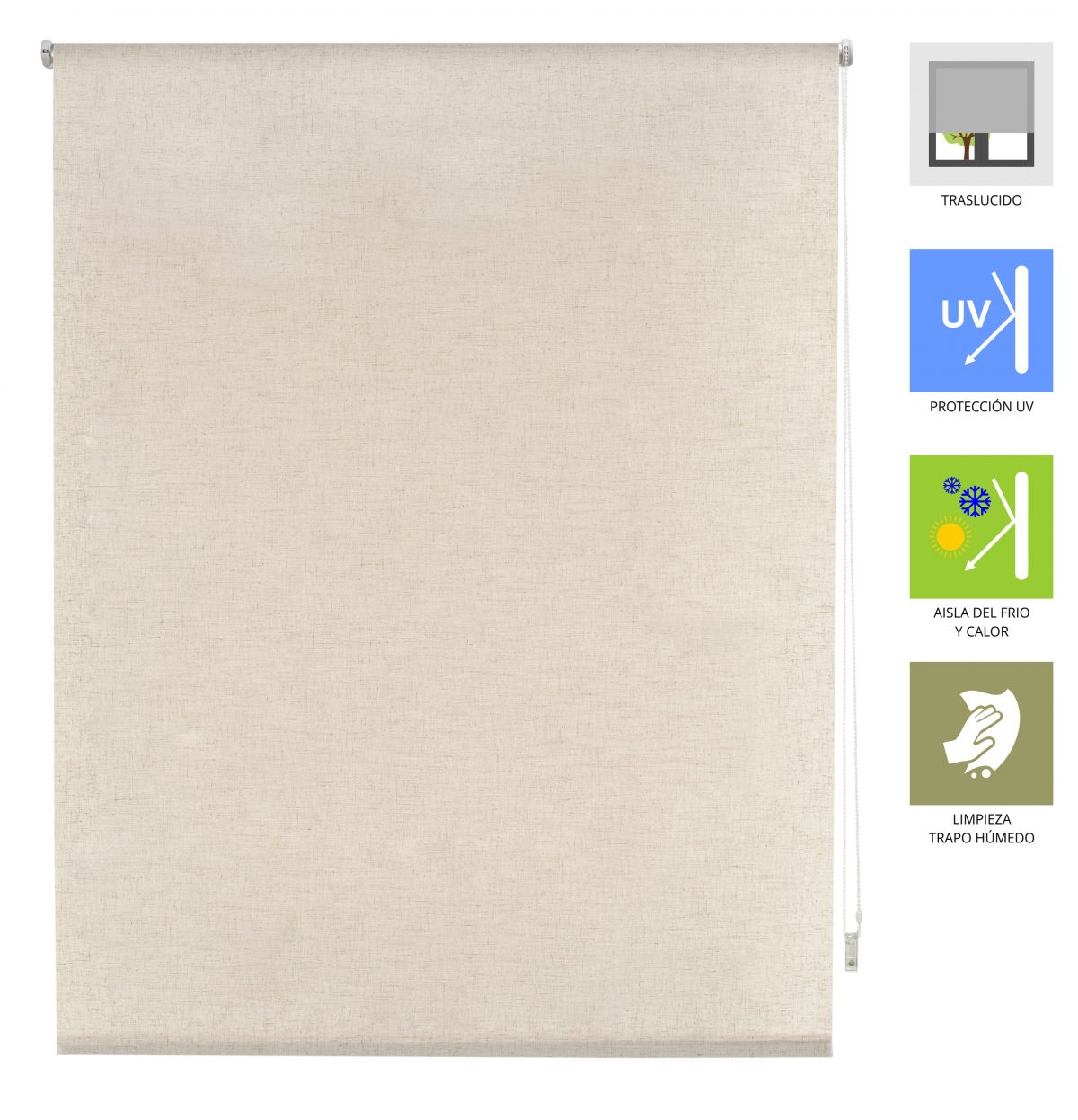 Estor enrrollable Lino opaco con un tono ideal para combinar con cualquier mueble o parte de la casa, que ademas, aísla del frío y del calor debido a las características técnicas del tejido. Protección UV (ultra violeta) y de fácil limpieza con un simple trapo húmedo. Perfecto para tu habitación para cuando necesites una completa oscuridad y así poder descansar apaciblemente.