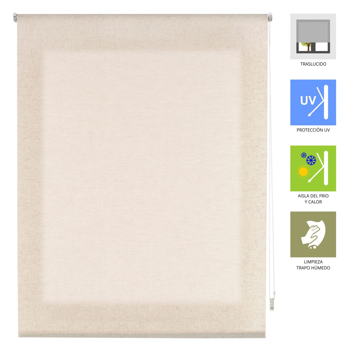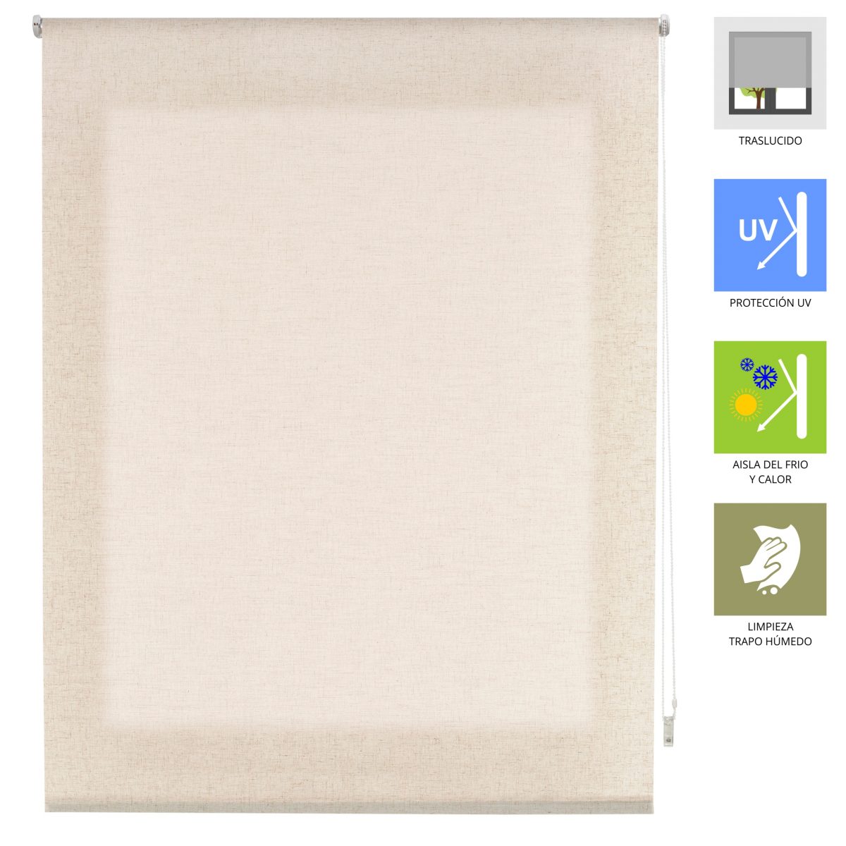 Estor translúcido Lino de color liso, tiene un tono ideal para combinar con cualquier mueble o parte de la casa. Su fácil colocación permite vestir tu hogar de manera alegre y sencilla en tan solo unos minutos. De fácil lavado con un simple trapo húmedo.
