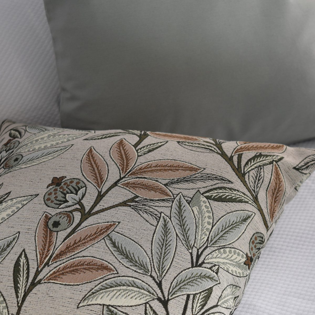 El diseño de la funda es detallado con hojas y frutos en tonos tierra y verde sobre un fondo claro aporta frescura y sofisticación a cualquier ambiente. Ideal para espacios que buscan un estilo sereno, orgánico y atemporal. Esta combinación de colores y formas crea un efecto visual atractivo y sofisticado, ideal para dar vida a sofás, sillones o camas. No es una funda básica: es una pieza decorativa que puede transformar por completo cualquier espacio.