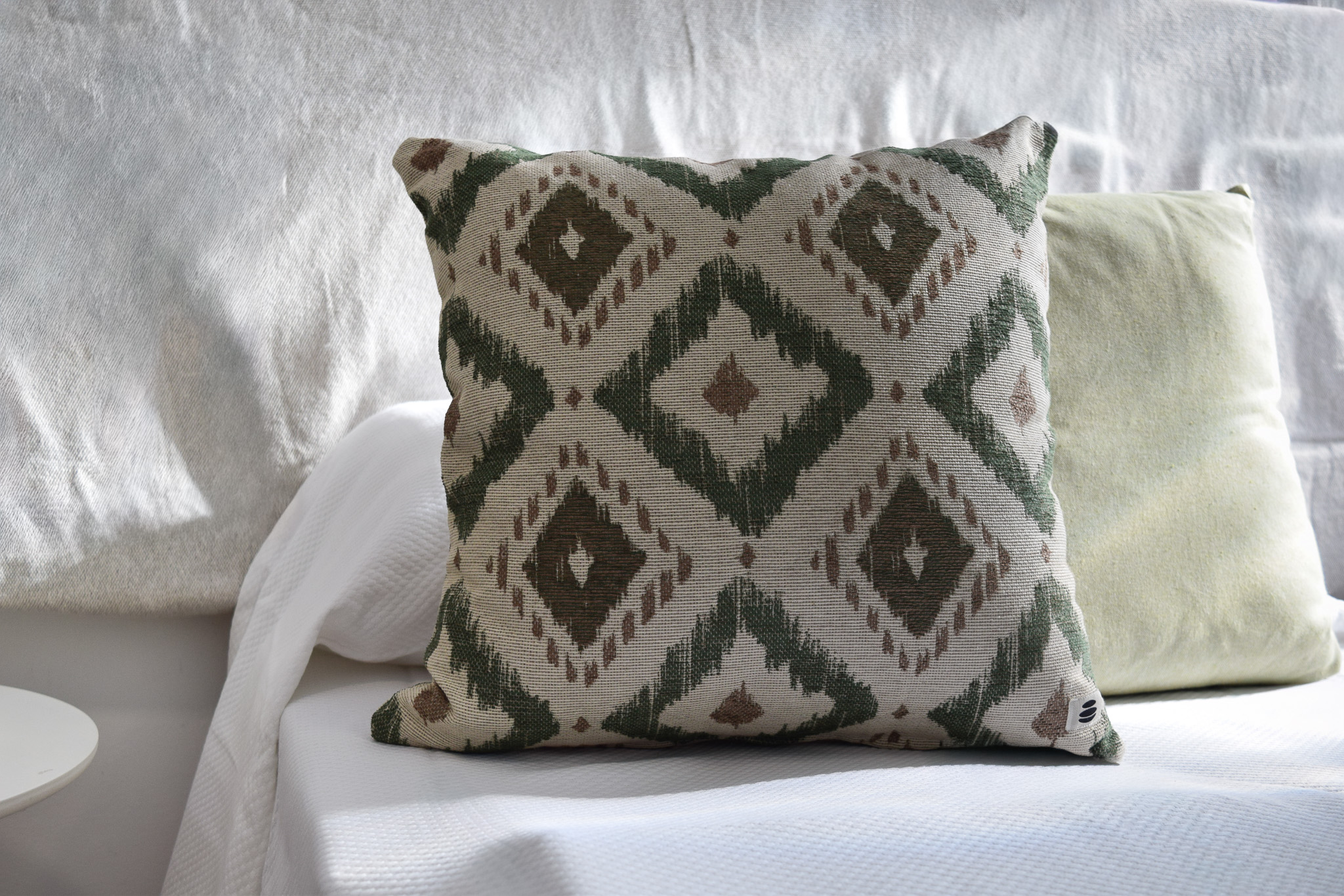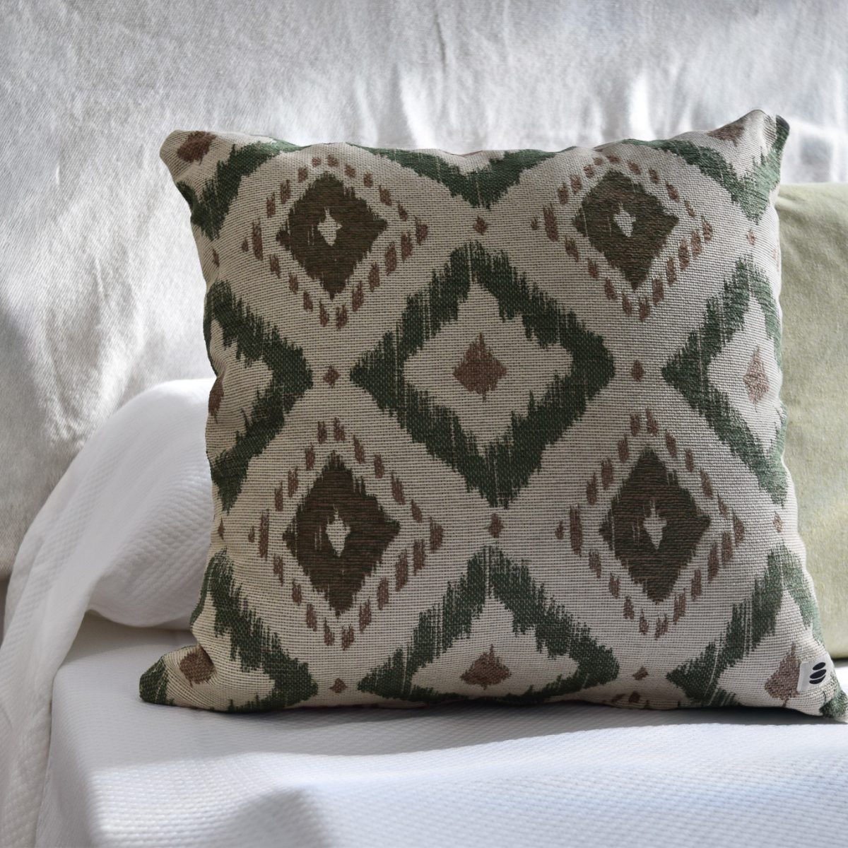 El diseño de la funda presenta un llamativo estampado de inspiración étnica en tonos tierra y verdes. Esta combinación de colores y formas crea un efecto visual atractivo y sofisticado, ideal para dar vida a sofás, sillones o camas. No es una funda básica: es una pieza decorativa que puede transformar por completo cualquier espacio.