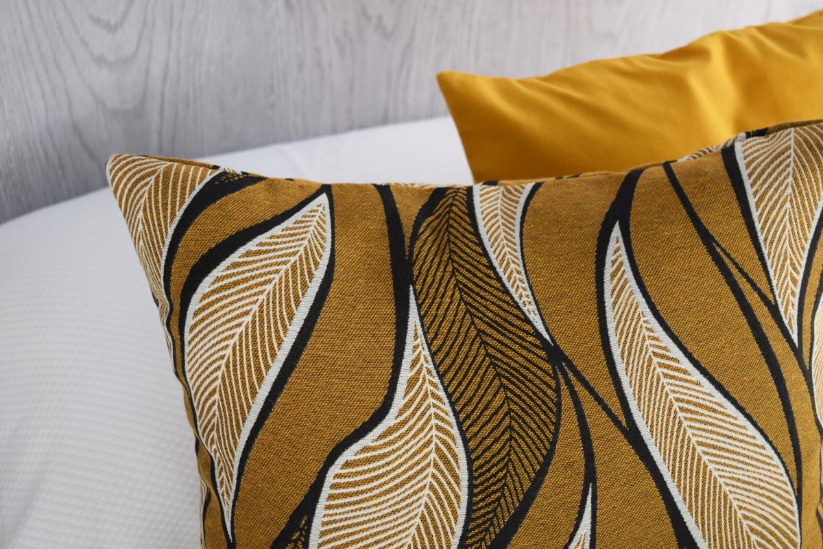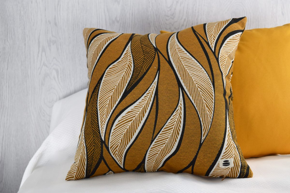 El diseño de la funda es elegante y contemporáneo inspirado en la fluidez de la naturaleza. Con un fondo en tonos tierra con hojas estilizadas y trazos negros, esta combinación de colores y formas crea un efecto visual atractivo y sofisticado, ideal para dar vida a sofás, sillones o camas. No es una funda básica: es una pieza decorativa que puede transformar por completo cualquier espacio.
