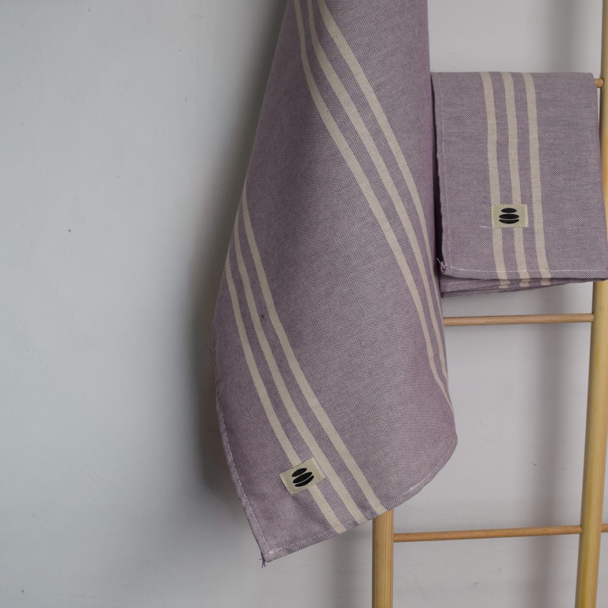 El paño de cocina vajilla Moraira se vende por pack de 2 unidades. Su diseño básico de color morado con líneas en blanco, lo hace la opción perfecta para tu hogar.