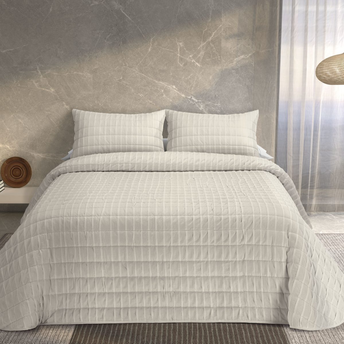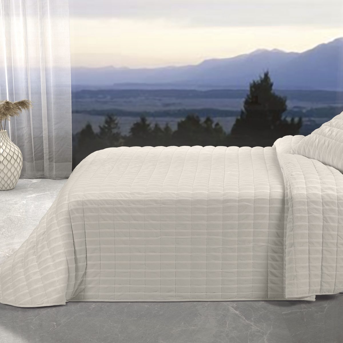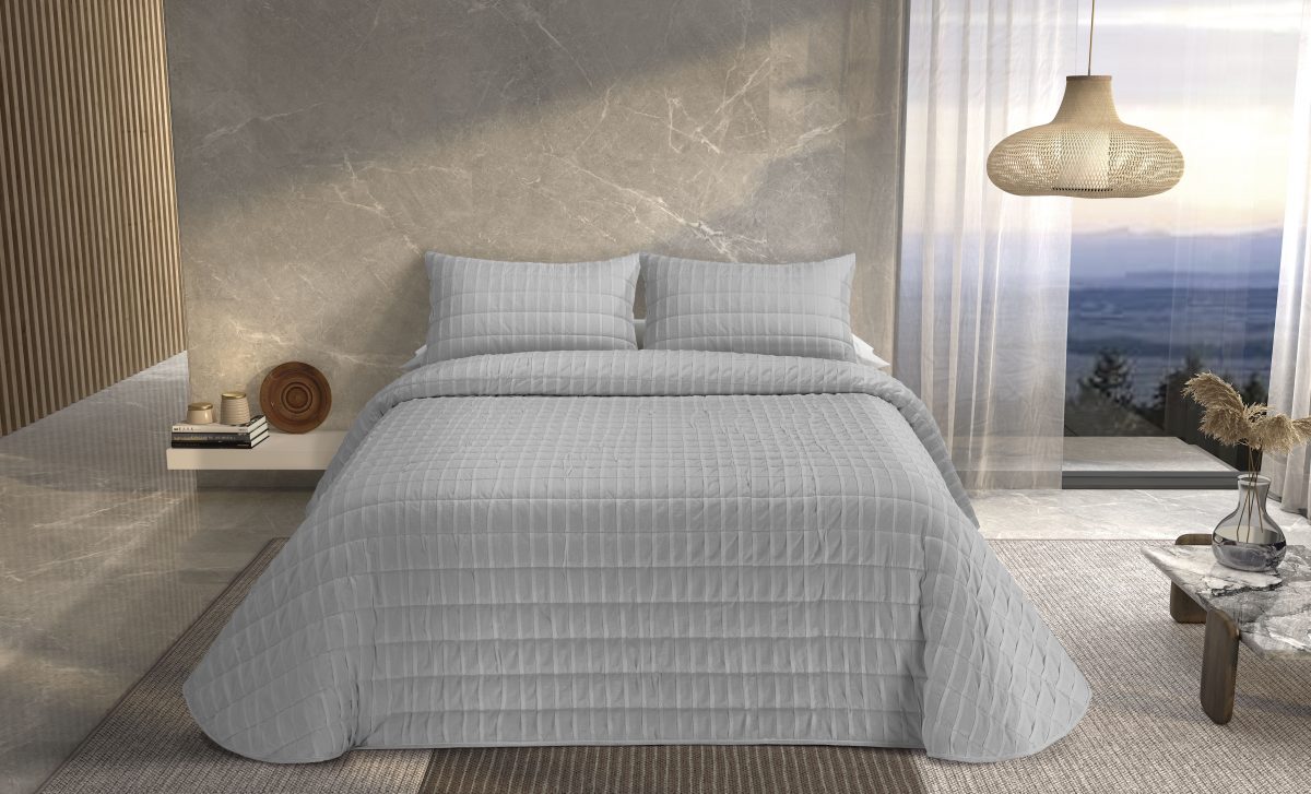 La colcha Ondas de Tejidos Reina se fabrica en tres colores distintos: el blanco para darle más luminosidad a tu habitación; gris claro, para aportar un toque de elegancia en cualquier estancia; y beige para darle el toque cálido a tu habitación.