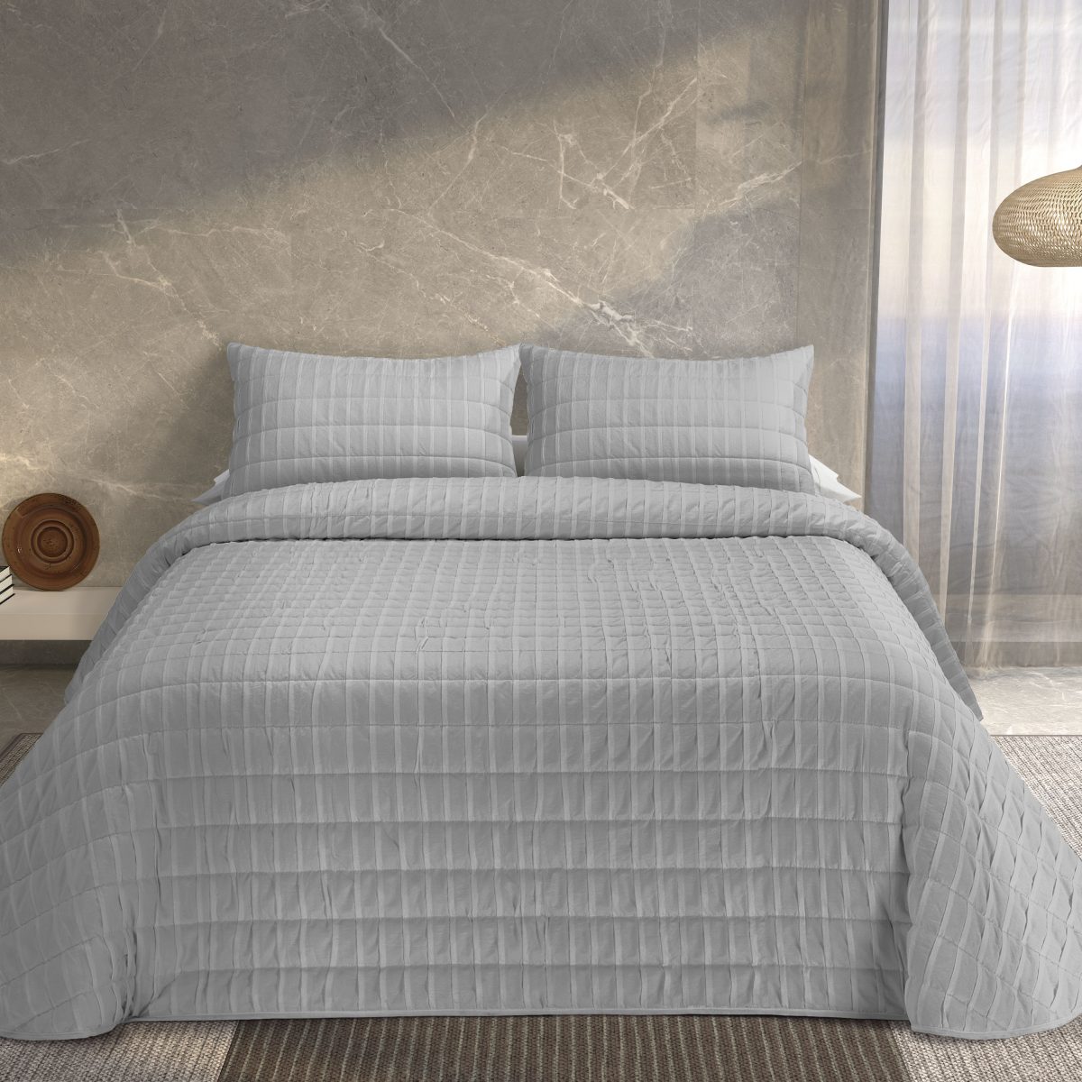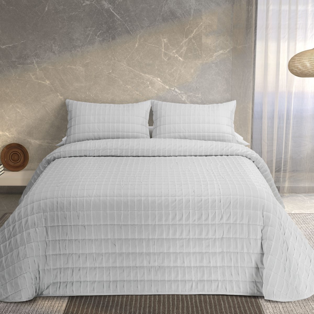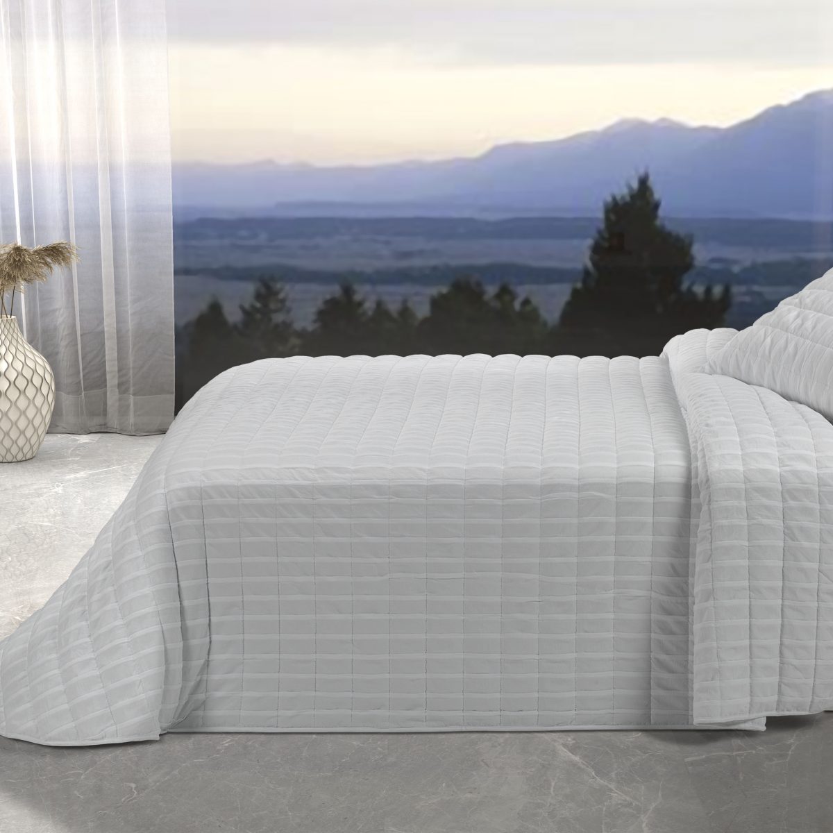 La colcha Ondas de Tejidos Reina se fabrica en tres colores distintos: el blanco para darle más luminosidad a tu habitación; gris claro, para aportar un toque de elegancia en cualquier estancia; y beige para darle el toque cálido a tu habitación.