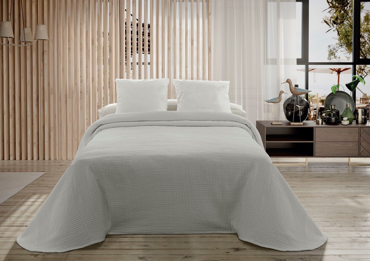 La colcha Palma de Tejidos Reina se fabrica en tres colores distintos: el blanco para darle más luminosidad a tu habitación; gris, para aportar el toque elegante; y beige para darle el toque cálido a tu habitación.